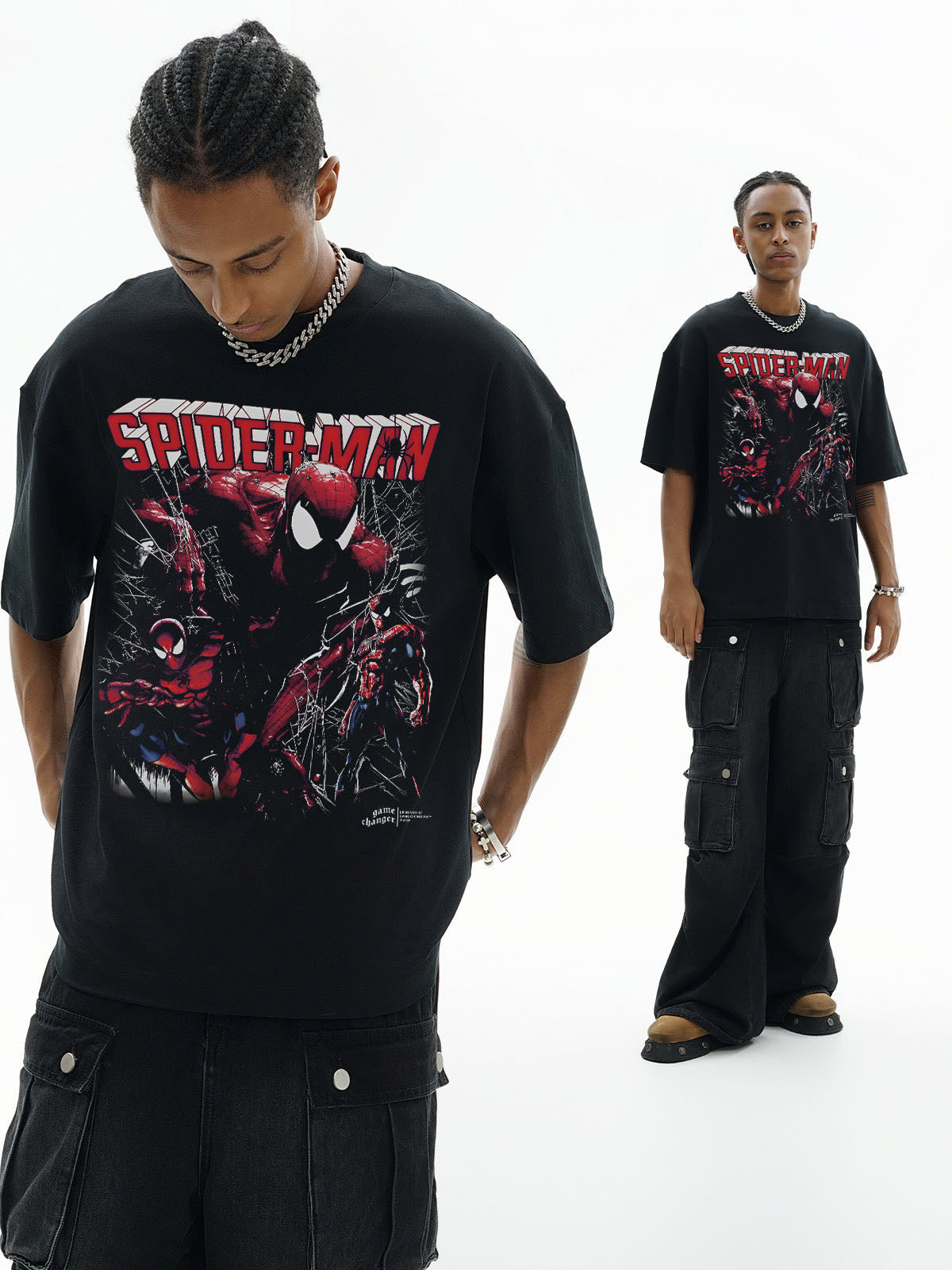This particular shirt displays Spiderman