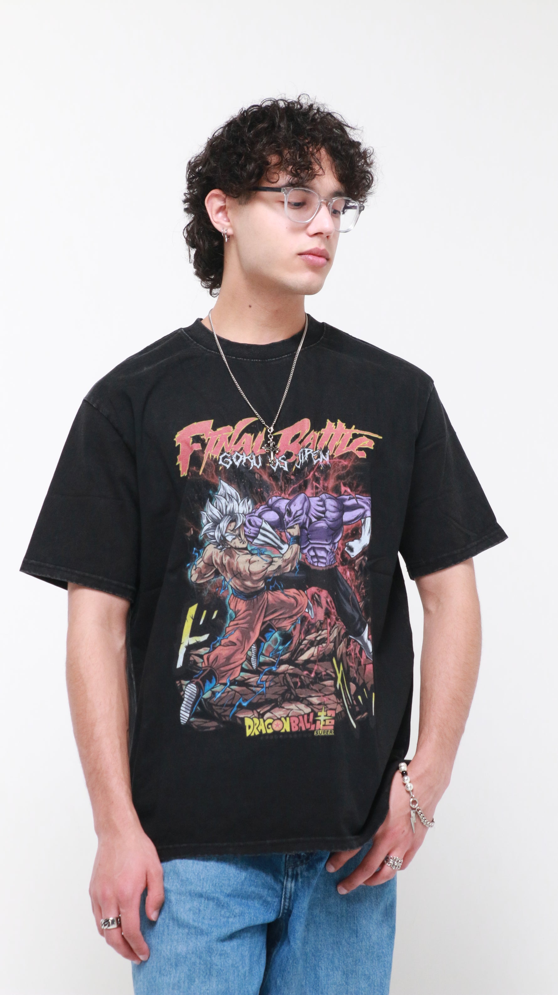 This particular shirt displays Goku and Jiren in a fighting pose