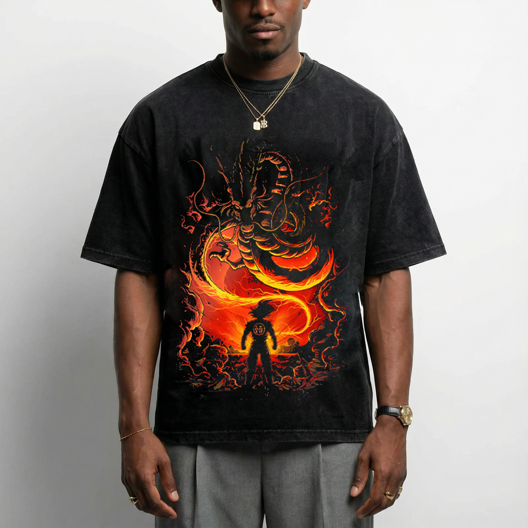 This particular shirt displays Shenron from Dragonball Z
