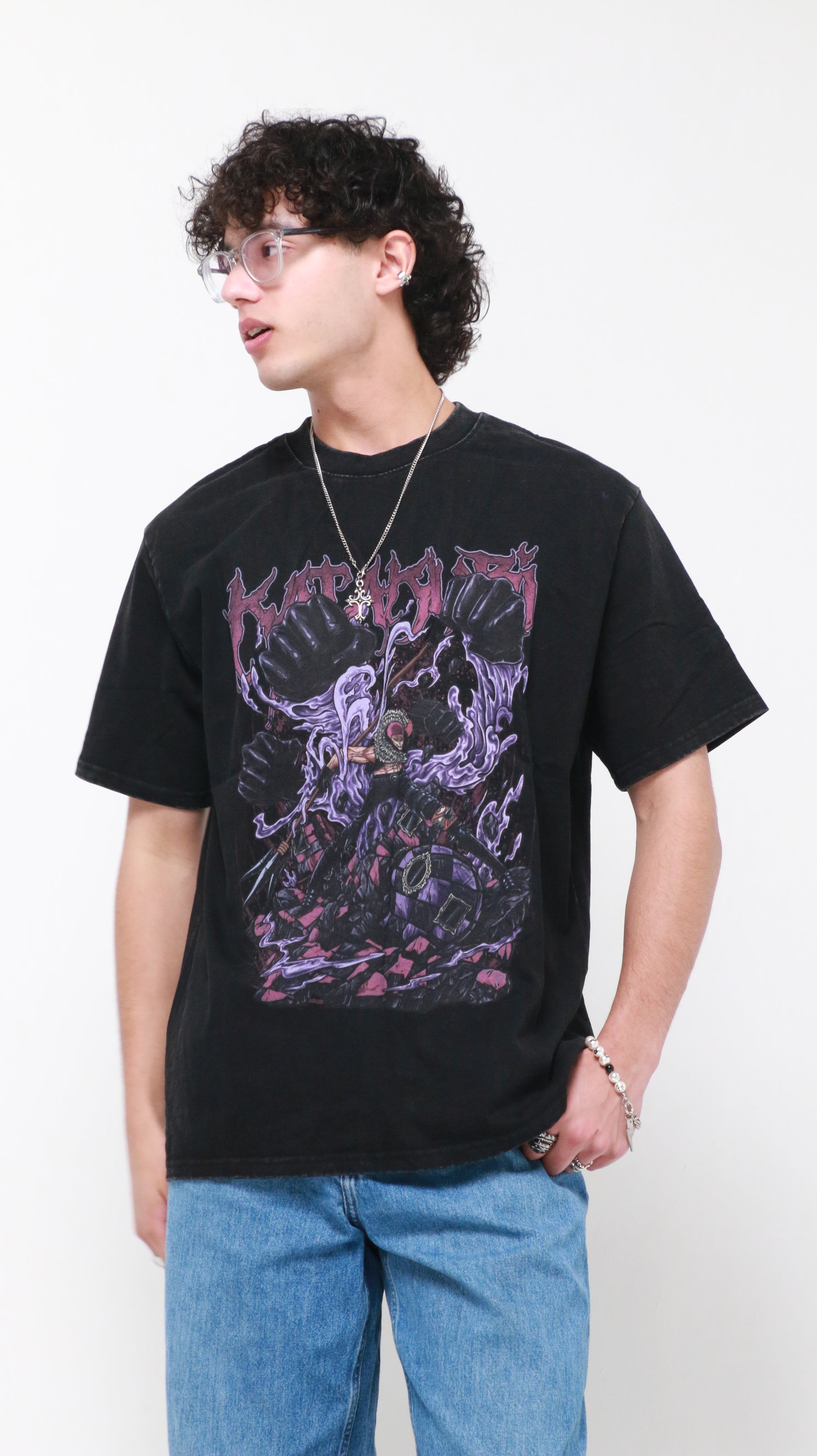 This particular shirt displays Katakuri the main antagonist of the Cake Island Arc, from One Piece